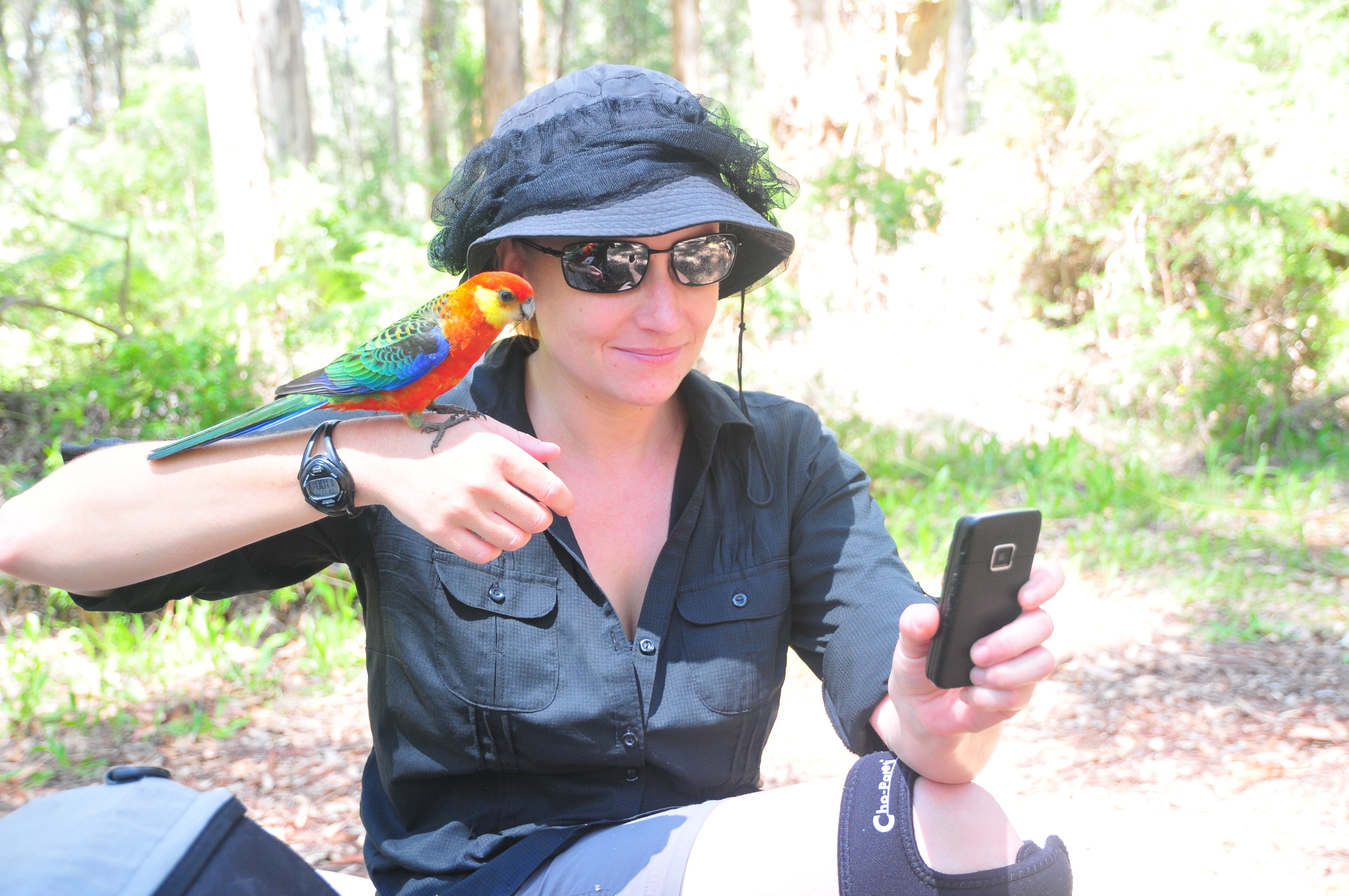 A friendly rosella helps Summer check her e-mail along the Bibulmun Track in Western Australia.
